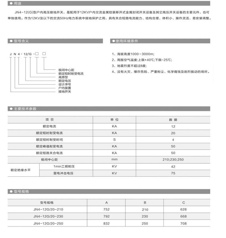 帶*項為必填項目咨詢:JN4 型戶內高壓接地開關